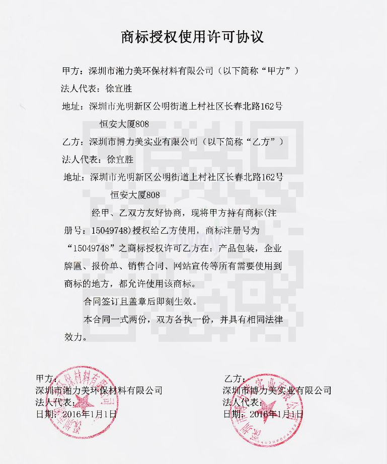 商标授权使用申明